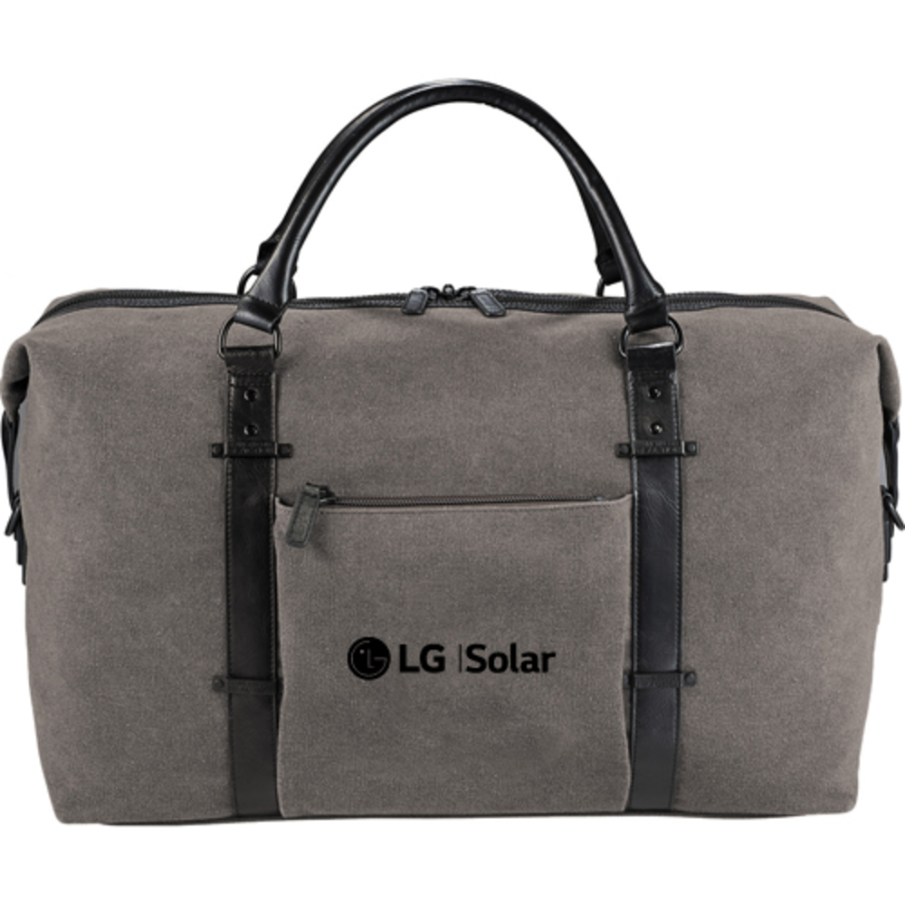 sku: Life234Large main compartment makes it a great travel piece and even has an interior zippered compartment for your valuables or iPad/tablet. Front zippered pocket and open slash pocket on back for quick access to your necessities while on the go. Heavy duty canvas, oversized zippers, and soft vinyl accents finish off the look.